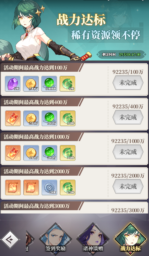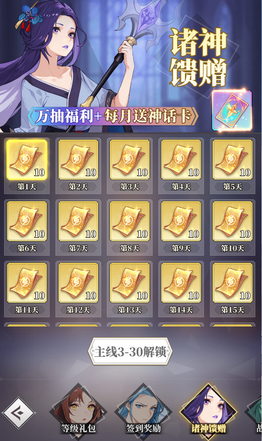 2.在線資源多多,新玩家在線30分鐘可免費(fèi)獲得靈玉*100、隨機(jī)五星神靈*1、SSR卡自選包*1、請神符*10以及若干材料。