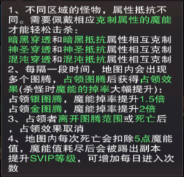該BOSS玩法進(jìn)入副本后擁有100點(diǎn)魔能值,該玩法主要掉落魔能裝備,集齊套裝可以激活套裝效果,對(duì)圣印屬性加成十分之大!具體玩法如下圖。
